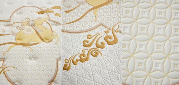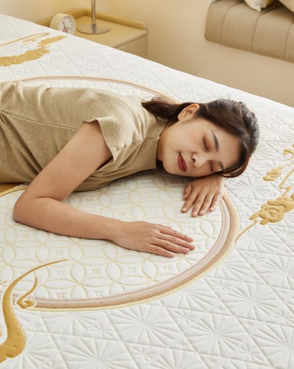 在外观上,新品床垫将文化祝福与舒适体验巧妙结合。床垫表面以海棠花窗为外框设计,内嵌奔跑瑞马元素,寓意“金马踏云,纳福招财”。搭配葫芦纹、祥云等传统吉祥纹样,传递出福禄安康的美好寓意。睡在这张床垫上,让日子柔软温馨,财运源源而来。