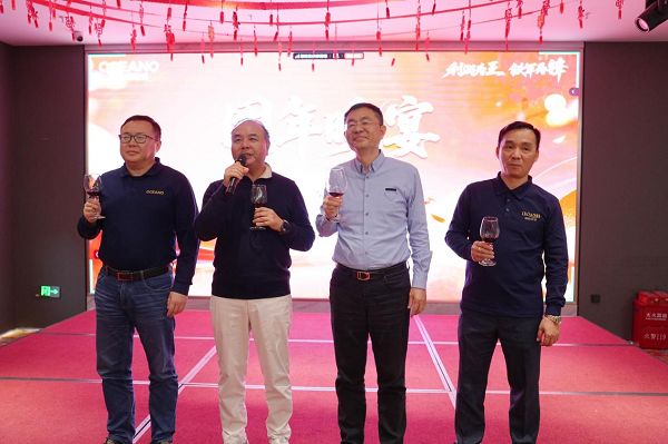 夜幕降临,团圆晚宴正式开启。美酒佳肴相伴,欢声笑语萦绕,现场温馨满溢。帝欧水华集团副董事长郭智勇与公司高层领导共同登台祝酒,并发表祝酒词,为全体员工送上新春祝福,同时勉励全体欧神诺铁军在2026年再接再厉、再创佳绩。