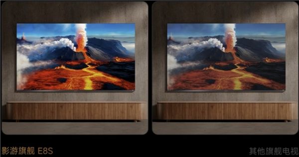 再就是视角问题。E8S搭载的黑曜屏Pro,1.8%的超低反射率,黑度领先行业3倍,更纯粹得黑屏不仅更抗反光,也使得画面的细节丰富度、色彩表现都更胜一筹。并且,它的可视彩视角提升了50%,无论多人共赏电影还是并肩游戏,均能享受一致的色彩与清晰细节。
