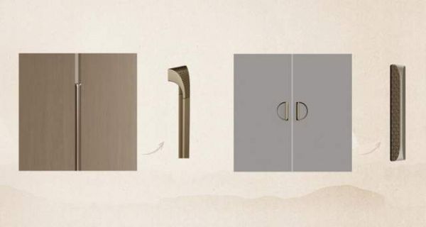 「静逸+」同步推出两款全新拉手。A款提取川渝古建双桅斗拱的力学结构与轮廓特征,将非遗竹丝编织的几何纹理通过精密工艺雕刻于金属表面,优雅拱形设计兼具力量与柔美。B款则从川渝古建屋脊形制中提炼脊骨结构线与雕花元素,打造出富有结构感和视觉张力的独特拉手造型。