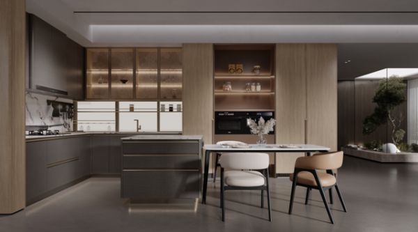 全友致力于为消费者提供整家生活解决方案,推荐搭配「静逸+」系列橱柜及门墙一体设计,实现风格与功能的高度统一。