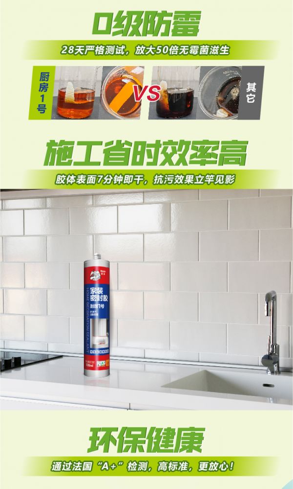 针对厨房特殊环境,真正适用的密封胶必须“抗油污、防霉变、粘得牢、环保健康”。 西卡德高「厨房1号密封胶」,性能硬核,为健康厨房守护好每一道缝隙。