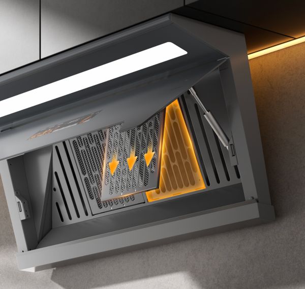 而磁吸式模块化快拆设计,则让更换油网变得轻而易举,双手轻拉即可取下,无需工具,也无需繁琐操作,让日常清洁变得轻松而省心,轻松解锁无忧舒适的厨居体验,尽享生活应有的精致格调。