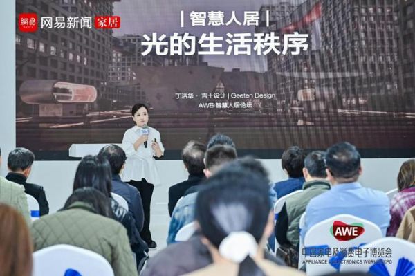 与吴巍的宏观视角形成互补,吉十设计主理人丁洁华的分享聚焦于微观尺度的情感叙事。在北京东城区一个无法吊顶、无法开洞的特殊住宅项目中,她为三代同堂的家庭精心编织了一套光环境系统。她没有被市场上繁复的智能系统所裹挟,而是从真实的居住逻辑出发,通过感应与氛围灯光,让光成为串联家庭成员行为轨迹的隐形线索。柔和的环境光、专注的局部光、低照度的夜灯……每一种光都在回应不同代际、不同场景下的差异化情感需求。她的实践证明,智慧人居未必需要复杂的系统堆砌——当空间秩序与光环境被妥善梳理,生活本身便会自然浮现为空间的主角。