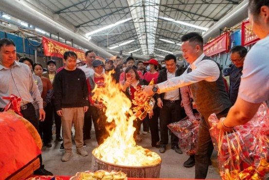 于点火仪式现场,全体参与人员展现出斗志昂扬的全新精神风貌,以高度的专注与热忱共同参与窑炉点火这一关键环节。窑炉中熊熊燃烧的窑火,其释放出的强大热能,恰似为粤强品牌量身定制的专属能量引擎,持续不断地为品牌发展提供强劲动力。这熊熊窑火不仅代表着能源的高效转化与利用,更象征着粤强品牌在高质量发展的战略轨道上,凭借卓越的技术实力、创新的管理理念以及坚定的市场信念,稳步迈进、持续突破。