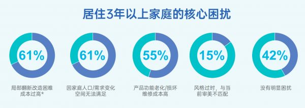 当优质的产品与卓越的体验构建了居住空间本体,那么“空间的可进化性”则是赋予这一空间“动态生命”的关键,也是“居住空间长效价值模型”中面向未来的核心。家作为生活的容器,必须具备“新陈代谢”的能力,以适配家庭结构、生活方式与审美的自然变迁。然而现实中,超六成家庭正受困于旧改难题:高昂的隐性成本与复杂的施工流程,往往让这份对“进化”的渴望止步于繁琐。当居住的长效价值遭遇现实的服务断层,如何打破僵局成为行业亟待破解的考题。