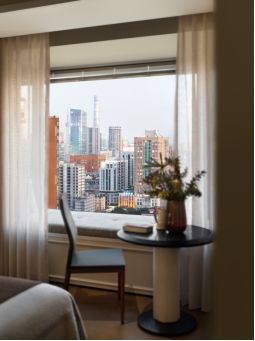 临飘窗处, Søren Horn的曲线靠背椅 ,以优雅线条柔化环境,成为阅读或冥想的温暖角落。远处不同时段的东方明珠犹如一幅静物画,当夜晚时分铂金色的灯光洒落,更添朦胧意境。