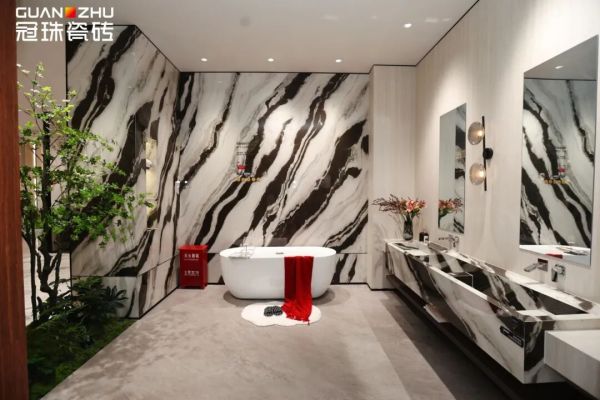 石家庄冠珠瓷砖旗舰店拥有超1500平方米的展示空间,集冠珠瓷砖全系列产品展示、东方人居范式空间应用示范、成品交付系统等于一体,采用沉浸式空间布局,每一处细节均彰显出高端品质与设计美学,高度契合消费者对于场景化体验的家装需求。