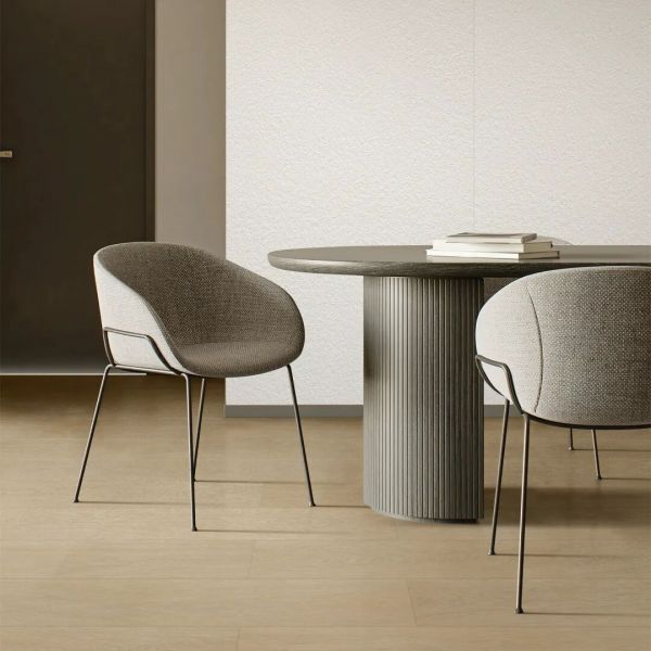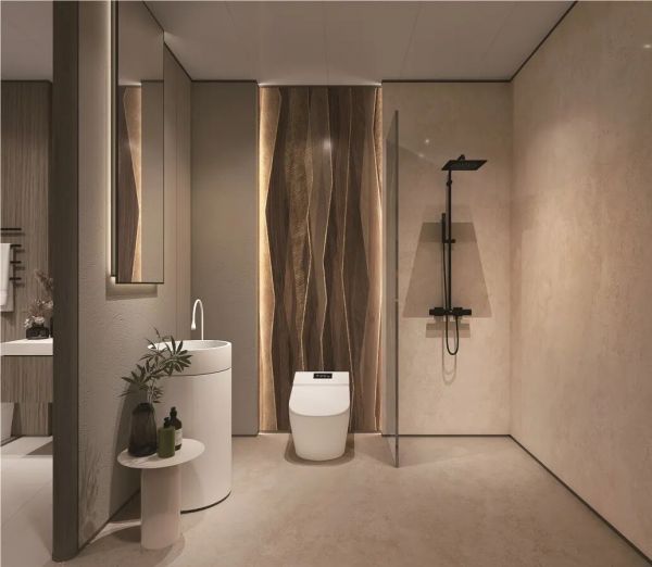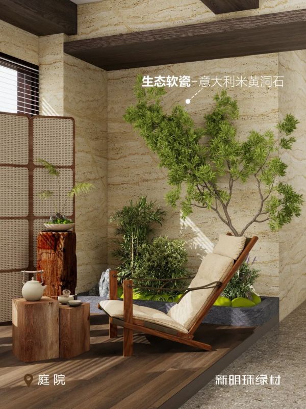 无论是生态软瓷,还是石晶墙地板等,都自带「自然基因」。生态软瓷柔韧可塑,能随心贴合弧形圆柱与各类异形结构,让设计师的创意完美落地;质地轻盈,既减轻建筑负荷,又在运输与安装中大幅降低碳足迹。