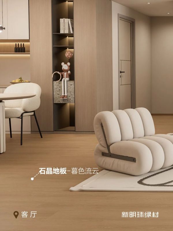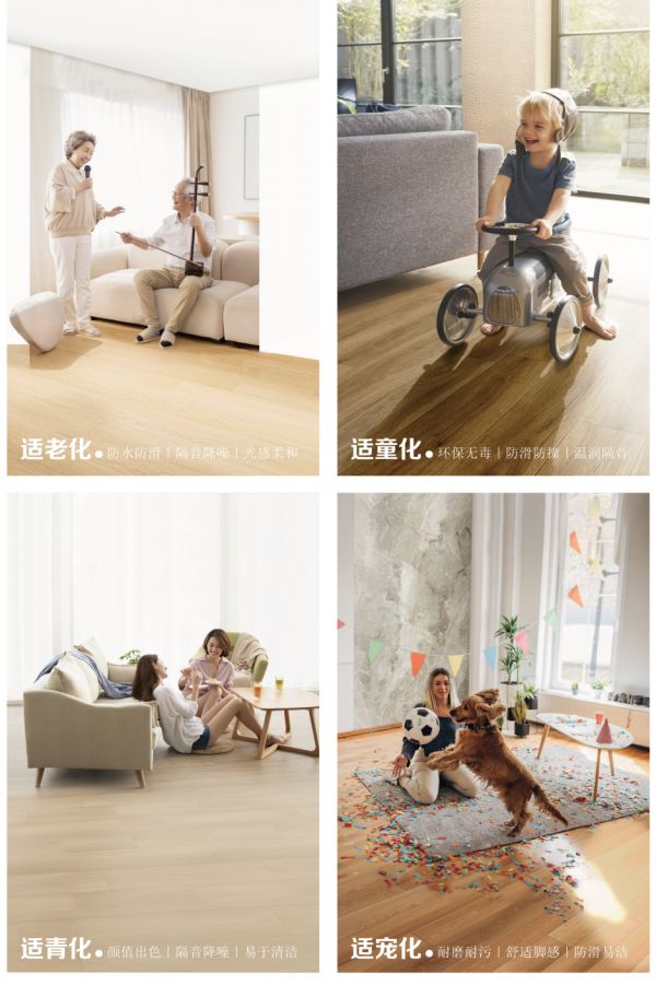 新明珠绿材,以科技温度,守护全龄生活。适老化守护,触感舒适,隔音降噪,给长辈安静好眠;地面防滑,让每一步都更安心。适青化主张,简约耐看、环保健康、灵活适配多元风格,满足青年对品质生活与个性空间的追求。