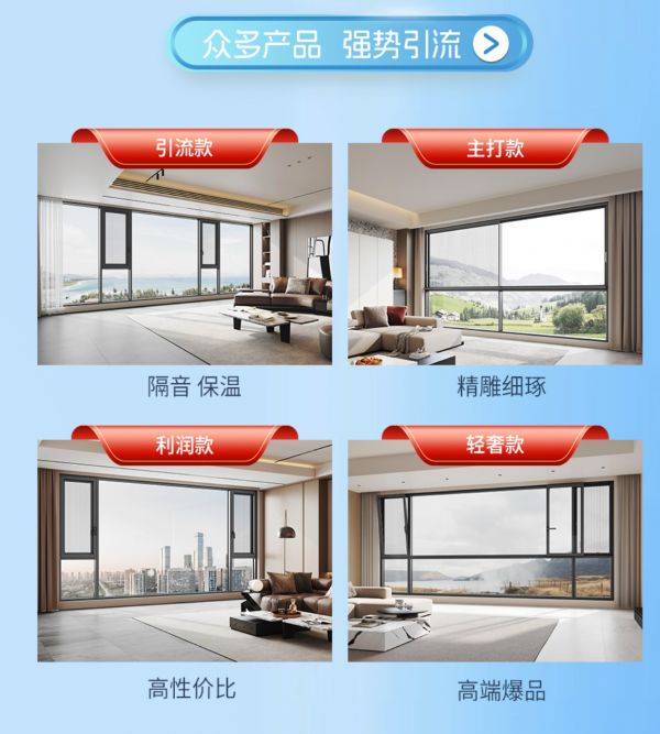 产品线丰富多元,涵盖系统窗、平开门、极窄推拉门、电动推拉门、智能定制门窗系统等,无论是高端住宅、商业地产还是智能家居需求,都能在这里找到满意的解决方案。多元产品矩阵,精准覆盖各层级客户,不愁没订单,轻松拓客锁客。