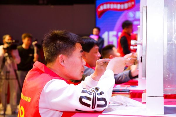 比赛现场气氛紧张热烈,初赛阶段,网购普通智能锁在专业锁匠手中快速被开启,对比之下更凸显安全锁具的重要性。晋级正赛的6位顶端选手轮番上阵,全神贯注发起技术挑战,计时器一分一秒流逝,玥玛防暴智能锁始终稳如磐石。