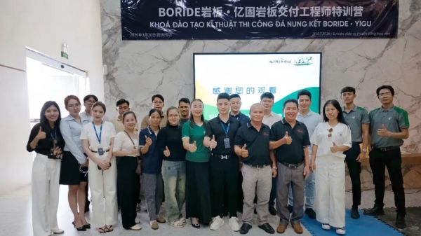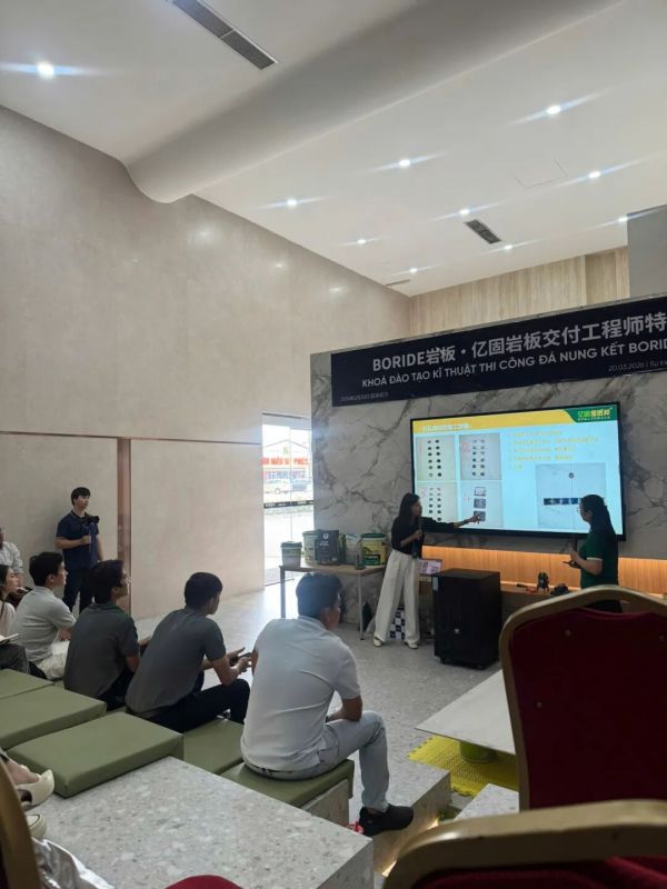当多数企业仍停留在产品出口的初级阶段,民族品牌亿固已率先将竞争维度从材料延伸至交付体系。依托国内持续开展的“岩板铺贴全能工匠研修班”所沉淀的成熟模式,在越南落地首站“BORIDE岩板·亿固岩板交付工程师特训营”,实现了从产品出海到标准出海的战略性跨越。