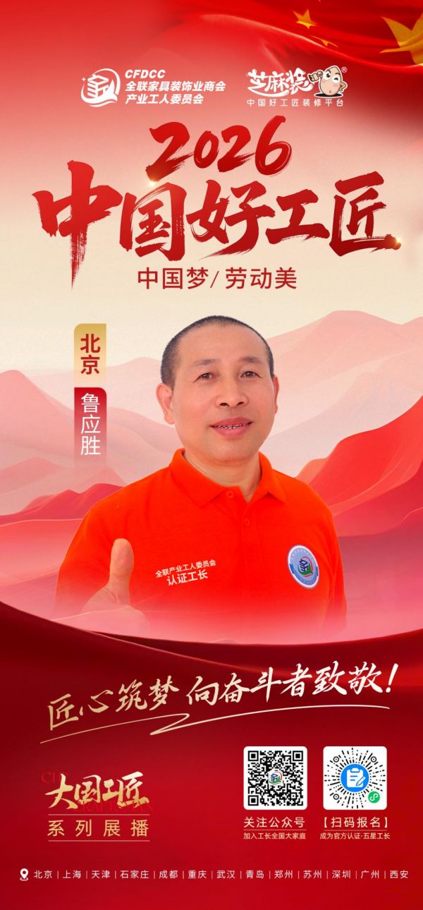 二十余载时光,鲁应胜从白手起家的北漂匠人,成长为京城家装行业的资深工长,他没有惊天动地的成就,却将匠心刻进每一道施工工序,将诚心融入每一次业主服务。他以匠门底蕴为基,以实用精工为尺,以诚心相待为暖,在平凡的岗位上默默耕耘,不仅为万千家庭筑造了温馨的居住空间,更以实际行动诠释了精益求精、守正创新的大国工匠精神。在家装行业的发展道路上,鲁应胜仍初心如磐,步履不停,用匠心与诚心继续书写着中国好工匠的奋进篇章。