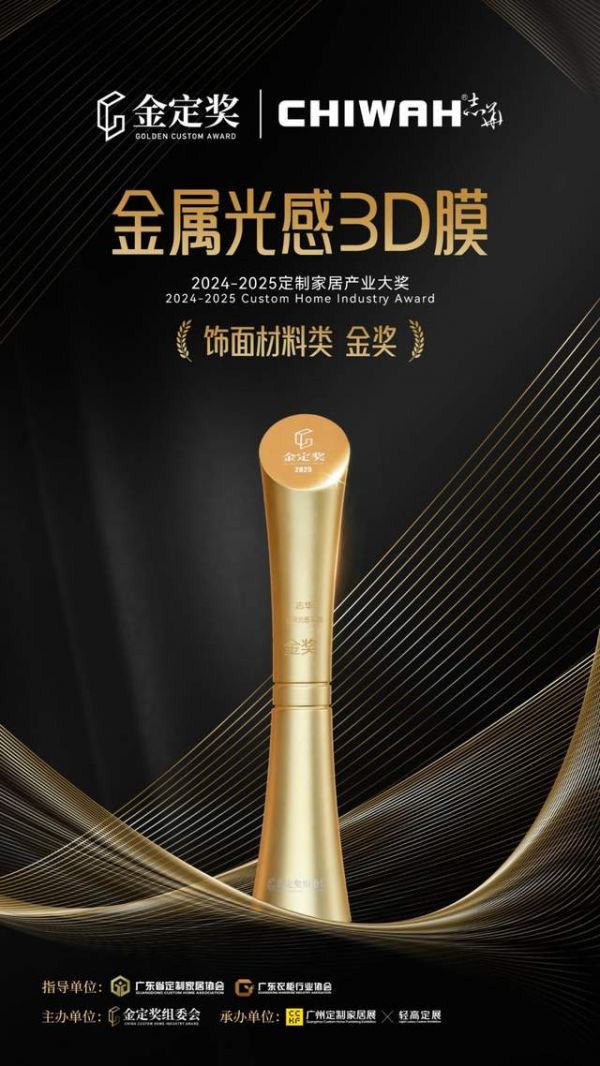 连续三年蝉联金定奖荣誉,不是终点,而是新的起点。在定制家居产业竞争向材料科技底层深入的当下,志华·达益将继续以EB技术为核心,坚守创新初心,持续打磨更具竞争力的高端膜材产品,用科技赋能家居美学,以品质筑牢产品根基,为定制家居产业的生态进化贡献更多硬核力量,让每一款产品都成为家居空间的质感之选!