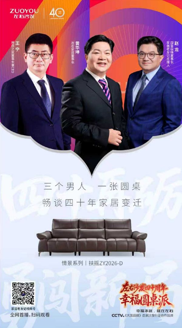 对话中,黄华坤董事长那句“四十年,我们就做了一件事:把每一个时代的幸福,一点点地,缝进沙发里,摆进千家万户的客厅里”,被媒体广泛引用,成为解读左右沙发品牌理念的点睛之笔。王宁董事长则用“变与不变”的智慧,精准概括了左右穿越周期的品牌定力:不变的是坚守客户价值的长期主义,变的是适配年轻化、个性化需求的持续创新。