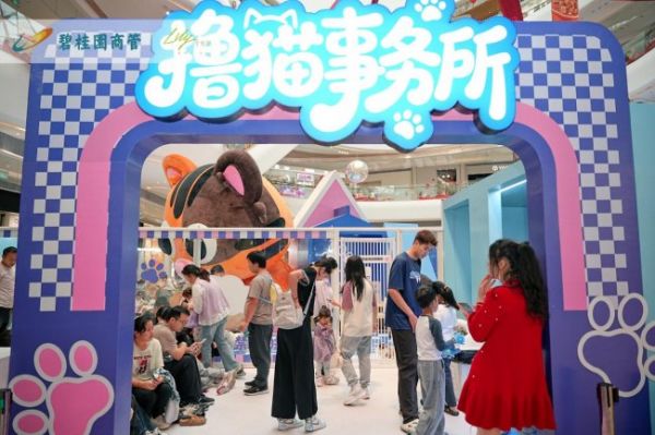 近日,东莞大朗碧桂园里悦里购物中心一楼中庭,一家名为“撸猫事务所”的沉浸式撸猫空间人气爆棚,周末日均客流超百人,成为区域新晋网红打卡地。凭借干净无异味、出片打卡点、萌猫超粘人三大核心优势,精准击中年轻人与亲子家庭的情绪消费需求,也让“撸猫经济”这一新兴风口在本地持续升温。