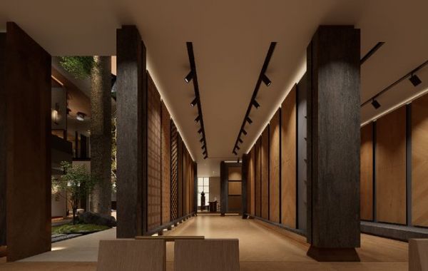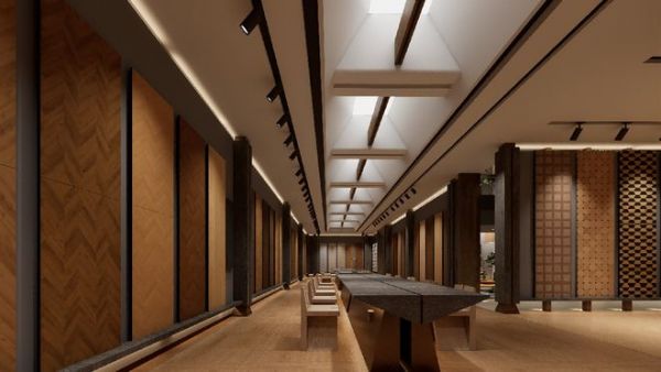 通过光影变化、空间层次的营造,让展厅既有木的温润柔和,又有建筑新材料的挺括质感,实现自然肌理与现代美学的平衡共生。