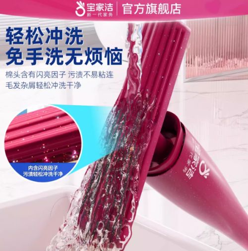 推荐产品:宝家洁欧科棉拖把、宝家洁迷你欧科棉拖把核心材质:PVA 胶棉 / 欧科棉,高密度微孔结构核心优势