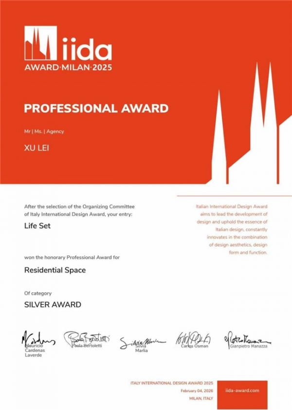 帜境墅装设计院院长徐磊,凭借其在别墅室内设计领域的深厚造诣,以及对高品质别墅生活的精准洞察与空间营造,荣膺意大利IIDA AWARD国际设计大奖-银奖。首席设计师冯菲则以乡墅设计的独特思考,聚焦建筑的在地性表达,将故乡的自然美景与归乡生活融入设计语言,斩获意大利IIDA AWARD国际设计大奖-国际创新设计大奖。两位设计师从数千名国际参赛者中脱颖而出,用两份沉甸甸的国际荣誉,为湖湘设计力量再添光彩,也让中国高端别墅设计的魅力在米兰的国际舞台上熠熠生辉。