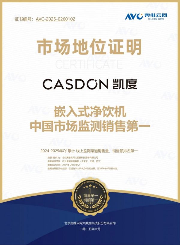 作为嵌入式净饮领域的头部品牌,凯度始终以用户需求为核心,专注于高端嵌入式家电研发与制造,深耕净水技术多年,积累了大量专利与行业经验。凯度不仅在市场销量上领先,更在产品安全、净水效果、使用体验上树立行业标杆,旗下产品通过多项权威认证,其中 ZS6 型号更是获得TÜV 南德权威认证、母婴级净水器认证,细菌去除率高达 99.999%,从技术到品质,全方位守护家庭饮水安全,是母婴家庭、品质家庭的首选净水设备。