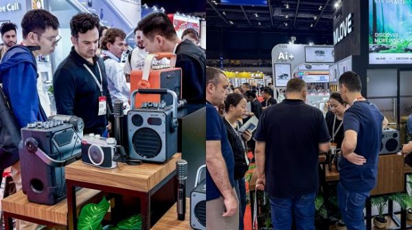 2026 年 4 月11日,香港环球资源展会现场,国内智能音频领域领军品牌“不见不散”音响携旗下重磅旗舰 ——VAELO V100 智能 KTV 音响惊艳亮相,并一举斩获环球资源创新大奖与欧洲最佳产品设计奖两项国际荣誉,成为本次展会的焦点产品之一,引领家庭智能 KTV 新趋势。