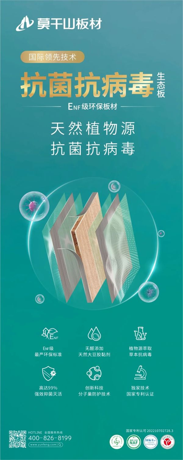 其创新研发的植物源抗菌抗病毒技术,成为产品核心优势之一,相关产品经认证取得了良好的市场成绩。该技术以天然植物提取物为助剂,具备高效抗菌抗病毒性能,适配儿童房、老人房等对健康要求较高的空间。此外,莫干山・茶香板等特色产品将环保与功能性深度融合,形成了独特的产品竞争力。