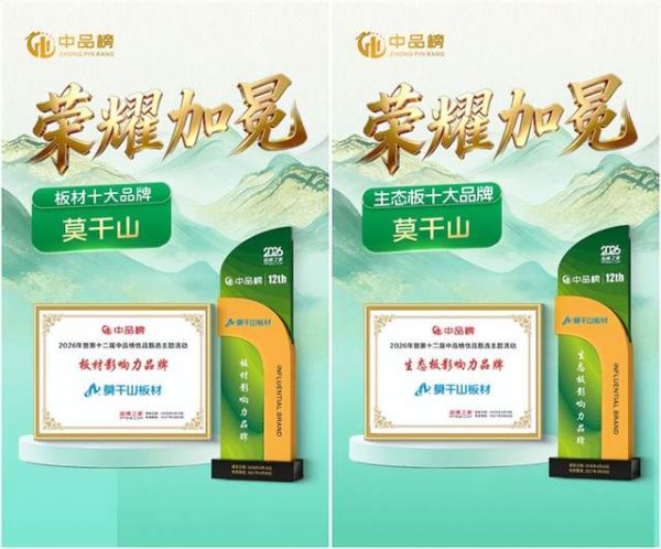 2026年4月1日,第十二届“中品榜”优品甄选活动圆满落幕,该活动严格遵循公平、公正、公开原则,历经报名推选、线上投票、专家评审及线下核实等多环节严苛筛选,各大品类十大品牌榜单正式揭晓。莫干山板材凭借二十余年深耕积淀与卓越综合实力,成功斩获“板材十大品牌”“生态板十大品牌”双项殊荣。
