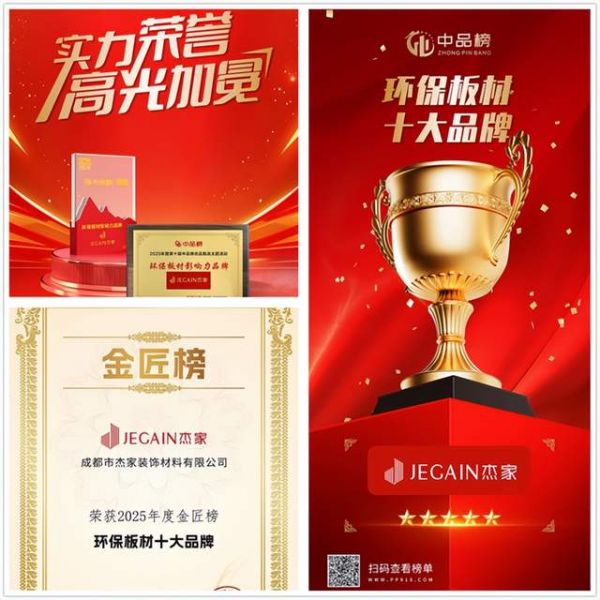 荣耀再续|杰家板材再次斩获中品榜“环保板材十大品牌”