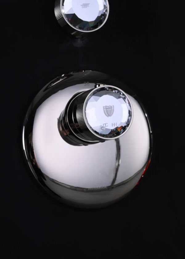 「女王秘境」系列,演绎高奢浪漫的极致表达。面板采用水晶镶嵌工艺,每一颗水晶在光影流转间释放优雅光泽,顶喷内嵌环形氛围灯,柔光随水流缓缓洒落,冷暖色调随心切换,营造极光般的梦幻意境,让淋浴成为一场沉浸式感官盛宴,完美适配轻奢、极简、科技风等多元家装风格,自带高级出片质感,成为闺蜜到访必打卡的空间亮点。