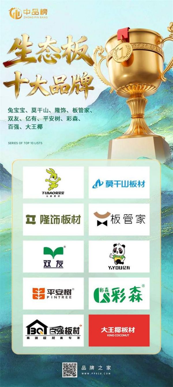 2、生态板十大品牌:兔宝宝、莫干山、隆饰、板管家、双友、亿有、平安树、彩森、百强、大王椰