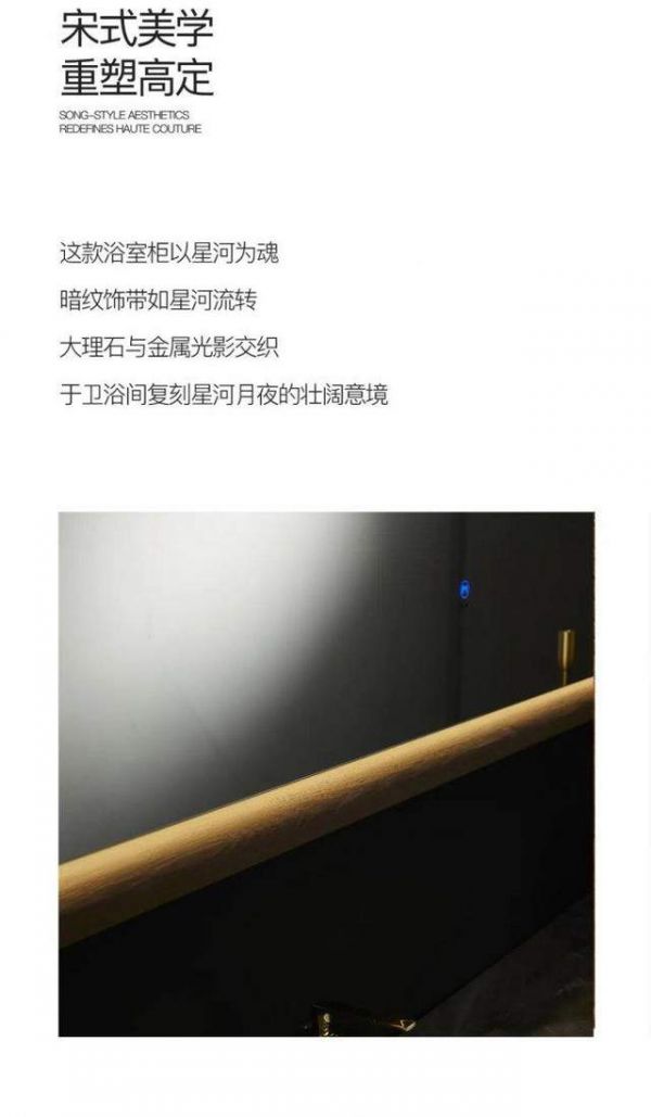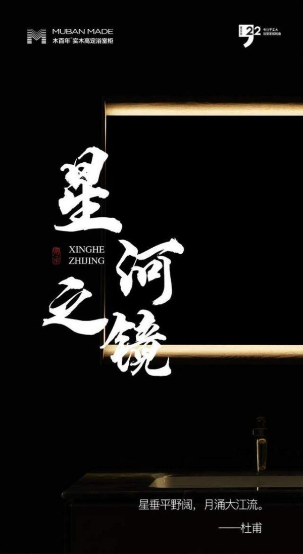 “星垂平野阔,月涌大江流”,杜甫笔下的壮阔星河,成为木百年“星河之镜”的设计灵感源泉。这款新品以星河为魂、宋韵为骨,将自然光影、东方哲思与现代实用完美融合,打破了传统浴室柜的功能局限,让卫浴空间成为兼具诗意与质感的私享天地。