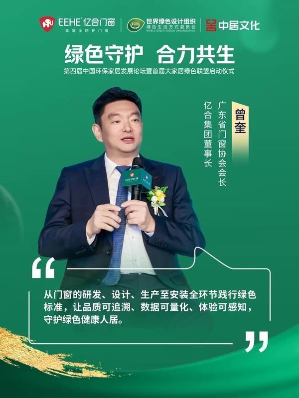 “绿色守护 合力共生”——亿合集团董事长曾奎在第四届中国环保家居发展论坛致辞并宣布首届大家...