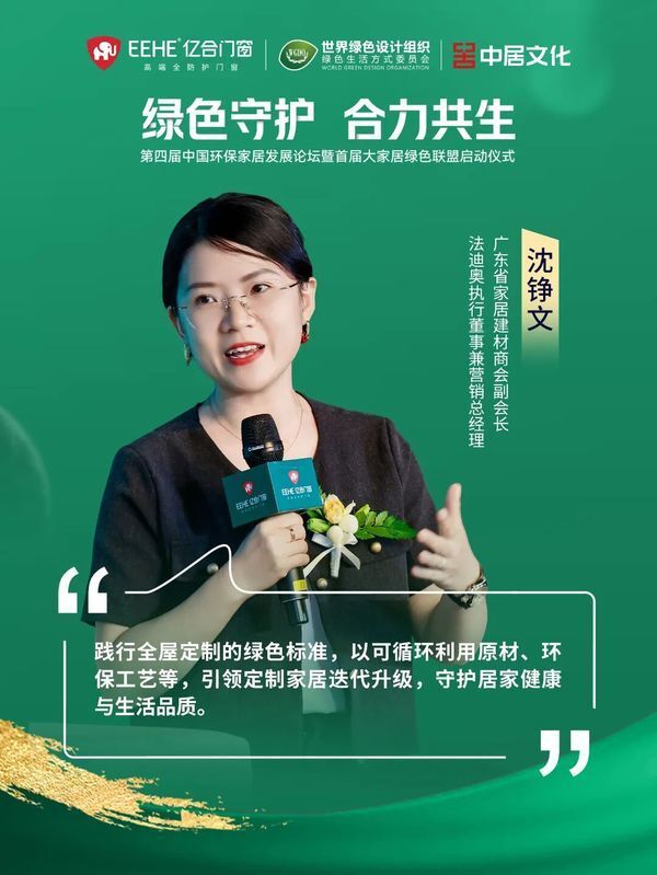 沈铮文 :对于全屋定制领域,希望全行业能够共同提高环保标准,为消费者提供更绿色、安全、健康、环保的好材料、好产品。