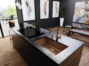 作为当之无愧的厨房净洗核心,弗兰卡Maris系列花岗岩水槽选用源自德国黑森林的石英石,若隐若现的晶体花纹尽显高贵,宽绰槽体从容收纳大件厨具,水花不溅,清洗高效;石英石表面硬度卓绝,无惧刮痕,挥洒自如。