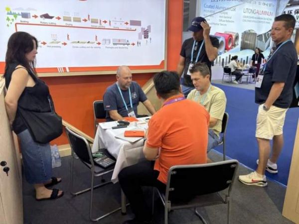广交会首日,工程木产品展区迅速升温。福庆LVL展位迎来来自欧洲、澳洲及中东等多个区域客户的集中到访,现场交流持续进行。