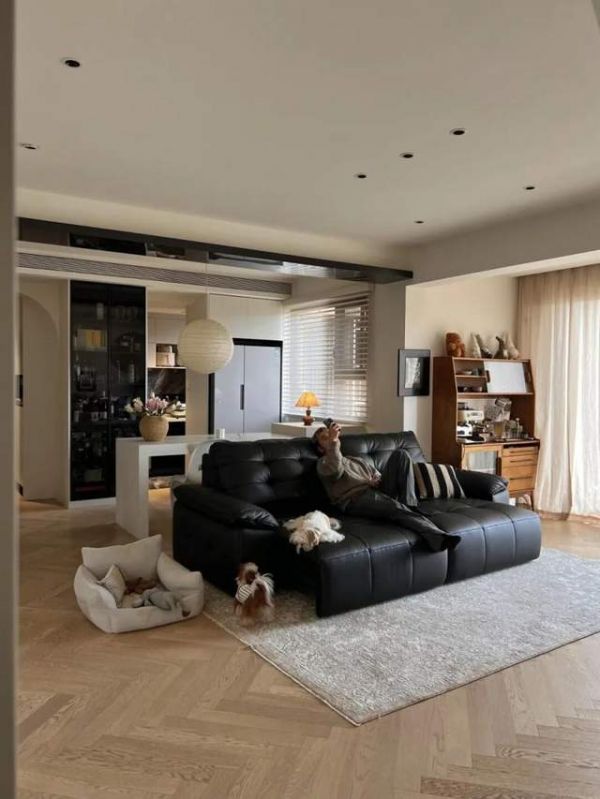 @快乐节节:“120㎡横厅显大多亏这张电动沙发床,多形态的变化模式,既待客从容,又能随时躺平放松,各有各的舒适”