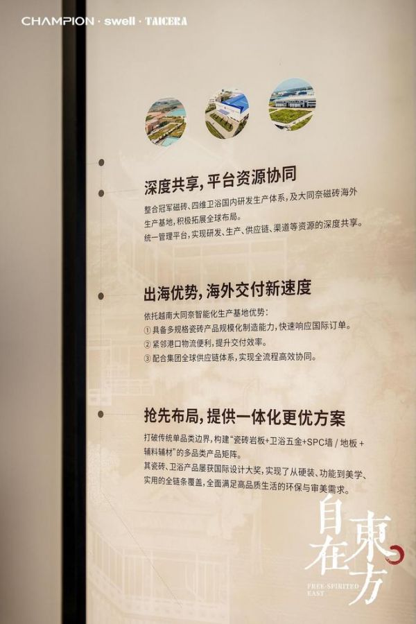 以国际资源整合,共筑多元生活新生态。三大优势:①深度共享,平台资源协同②出海优势,海外交付新速度③抢先布局,提供一体化更优方案。通过一系列资源的投入与整合,冠军家居向市场释放出与国内品牌携手出海的强烈信号。