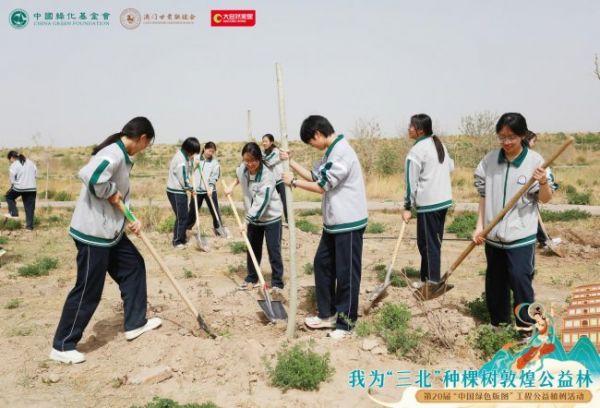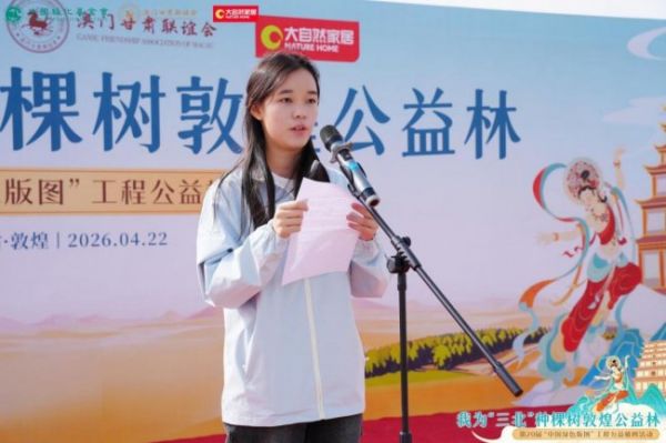 春风拂陇原,新绿染敦煌。4月22日世界地球日,大自然家居联合中国绿化基金会、澳门甘肃联谊会,在甘肃敦煌启动“我为‘三北’种棵树·敦煌公益林”——第20届“中国绿色版图”工程公益植树活动,积极响应国家“三北”工程六期建设,以生态造林守护敦煌绿洲。中国绿化基金会、甘肃省委统战部、甘肃省政协、澳门甘肃联谊会、澳门中联办相关领导、嘉宾,以及澳门青少年国情研学代表团、敦煌中学等代表齐聚一堂,共同见证公益林正式启幕。