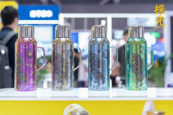 此次深圳礼品展上,採光 Seeklight 携手膳魔师(THERMOS)、朱炳仁铜、皇家雪莱莪四大品牌联袂亮相,以各具辨识度的设计语言与品牌理念,共同勾勒当下杯壶行业在品质化、礼品化与生活化趋势下的全新图景。其中,採光 Seeklight 所呈现的独有 Chroma-Ti 3.0 焕金工艺,以其极具识别性的视觉表现与精湛工艺质感,成为展会现场备受关注的一抹亮色。