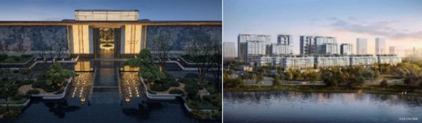 左侧为实景图,右侧为效果图,取自合肥金茂·璞逸云湖楼书