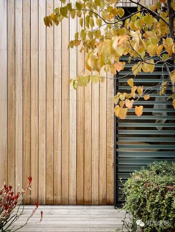 ▼卧室的床头板在走廊看来是木格栅,事实上,内部是一面黑色木墙,保证睡眠不受过道的声、光干扰。