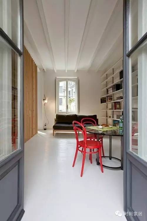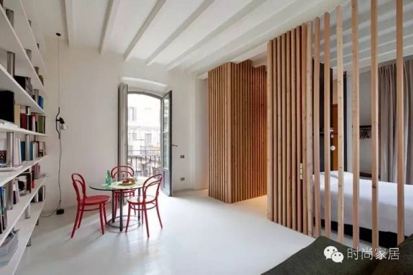 ▼这个位于意大利米兰的25平方米小公寓,由TOMO architects工作室设计,利用木格栅的巧妙视觉变化,增加了空间感,定义出不同的使用区域。