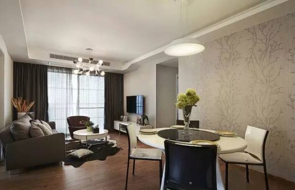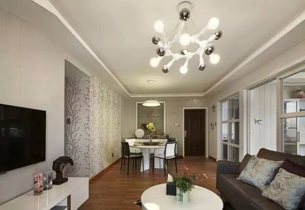 客厅到餐厅,通过吊灯、壁纸的变化,很好区分开