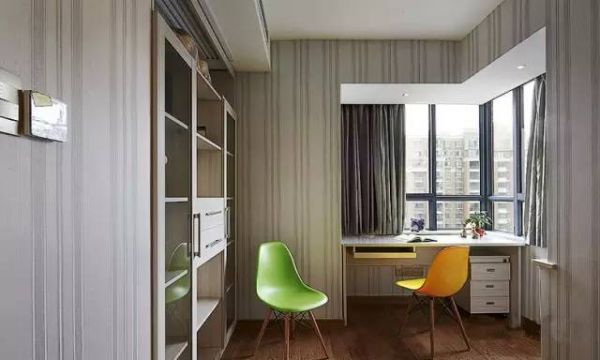 书房,两把颜色跳跃的座椅,让工作区显得不再枯燥紧张