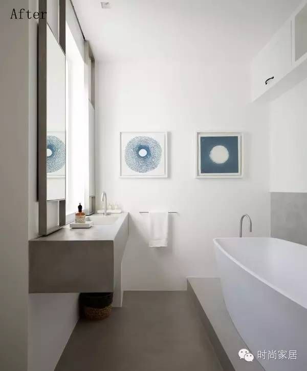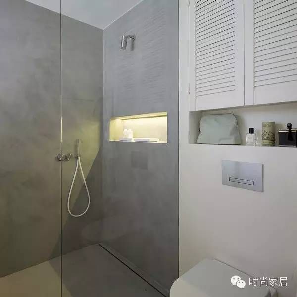 ▲浴室的另一角,设计师同样融入了水泥的设计,意在令老房子不仅拥有有现代生活的便利,还存有老房子的古朴本质。