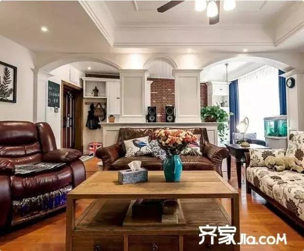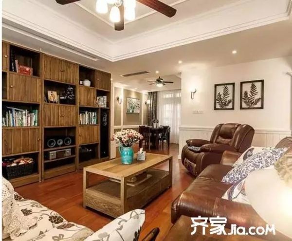 家具精美的轮廓完美的勾勒出淳朴自然的美式风格, 不论是匠心独运的沙发,还是古色古香的储柜,都让客厅综合着硬朗的气质,诠释出复古的韵味。