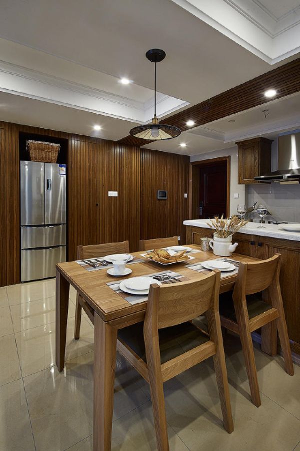 这房子原始户型结构一般,采光不好而且梁多,整体空间比较散。针对这一一种情况设计师采用了中式复古和美式工业风相结合,将简洁、粗犷和极致三种手法发挥到了极致。