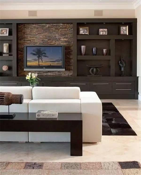 收纳型▼家具首先就应该以实用为主。以下这几款整体柜式电视背景,既没有浪费整面墙,又可以收纳不少杂物。还能够摆上好看的装饰品,看起来很有品味哦~