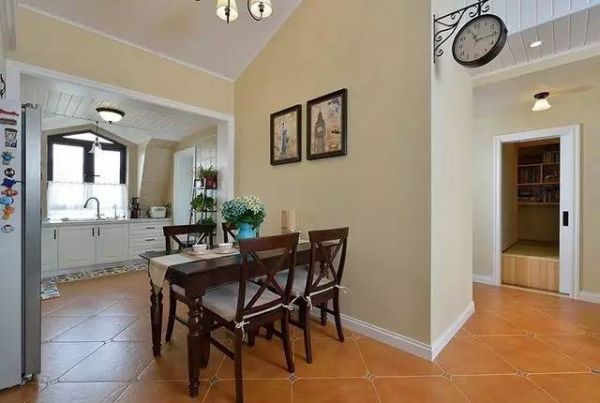 餐厅是夹在客厅和厨房之间的走道,三口之家使用完全足够了。